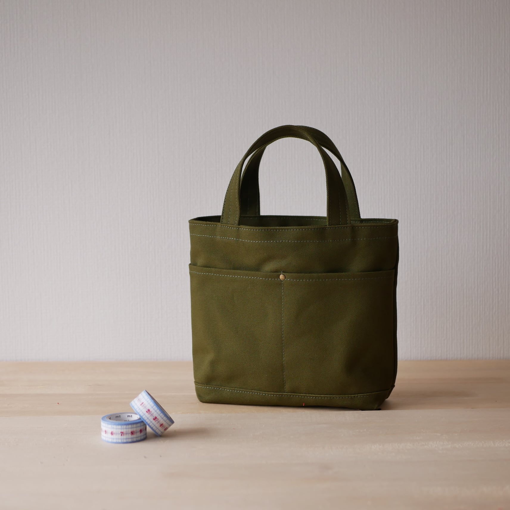 8号帆布でつくった縦と横が同じ長さのかばんです。